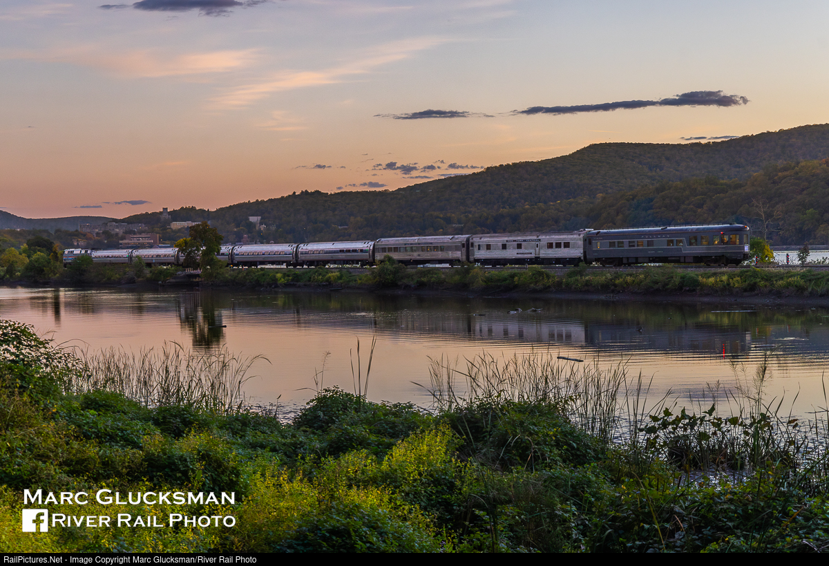 The Great Steel Fleet On The Hudson. The United Railroad Historical Society of New Jersey's "Hudson River Rail Excursions" have recently become 50% longer as the Swift Stream joins NYC 43 and the Hickory Creek to have three former New York Central Railroad private cars together. On the evening of Saturday, October 5, 2024, the trio is on the rear of Amtrak Train 244 as it passes through Cold Spring, New York at sunset on the Water Level Route.