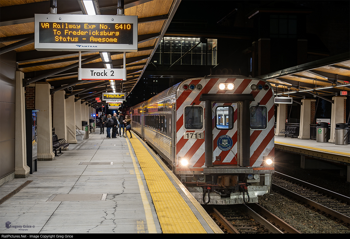 On October 6th, 2024, CTrail train 6410, led by Connecticut Department of Transportation (CTDOT) Mafersa cab car 1711, makes a station stop at Meriden, Connecticut, on the Hartford Line. This day marks the 20th anniversary of the ex-Virginia Railway Express (VRE) Mafersa fleet’s unveiling to riders at New Haven Union Station. These cars were originally acquired from VRE to expand Shore Line East service but are now primarily used on the Hartford Line.