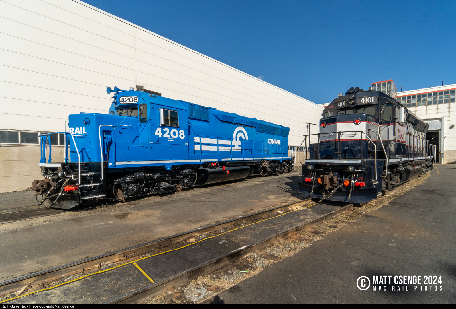 The Boys in Blue. On Saturday October 5, 2024, NJ Transit unveiled their newest heritage unit, honoring the legacy of Conrail as a commuter carrier! Commuter service on NJ Transit lines was operated by Conrail under contract to NJDOT from 1976-1983, when NJ Transit Rail Operations took over all commuter rail operations in the state. Chosen to receive the new paint scheme was GP40PH-2B no. 4208, which was built for Penn Central in 1965-1969 and was later operated by Conrail.
