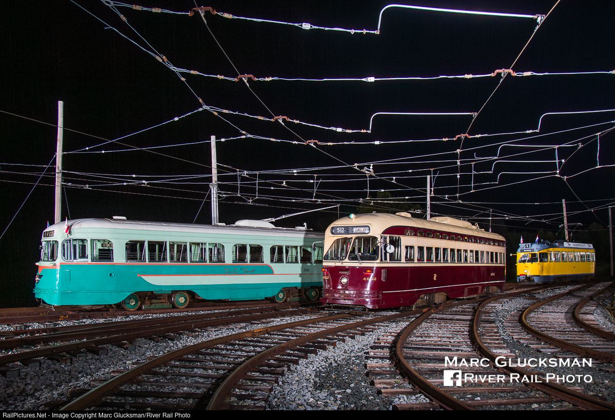 PCCs At Night. PCCs dominated the night shoot activities at the National Capital Trolley Museum in Colesville, Maryland on the night of October 15, 2016. DC Transit 1101 (St. Louis Car Company, 1937), Toronto Transit Commission 4602 (CCF, 1951), and Haag 1329 (La Brugeoise et Nivelles, 1971) represent a cross section of the history of the Presidents' Conference Committee (PCC) streetcar design. While the museum's initial focus was on vehicles that operated during the 99 1/2 years of electric traction in Washington DC, it has expanded its mission to include "....supplementing its collections with significant national and international objects to enhance its interpretive programs."