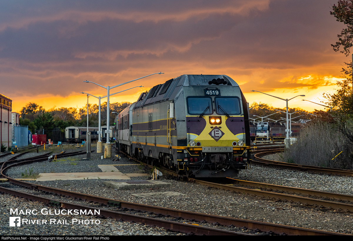 An Eerily Early Sunset. On the evening of October 16, 2021, NJ Transit NJTR 4519 (ALP-45DP, Erie Lackawanna) had just completed a trip around the loop in Bayhead, New Jersey when it stopped in the yard to prepare for the next trip to Long Branch. While all New Jersey Transit dual modes can be found anywhere on the system at any time, this was one of the first trips on the North Jersey Coast Line for this heritage unit.