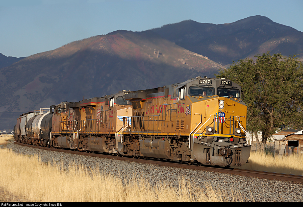 | UP 5767 and company, rumble westbound through the west side of Tooele, Utah. |