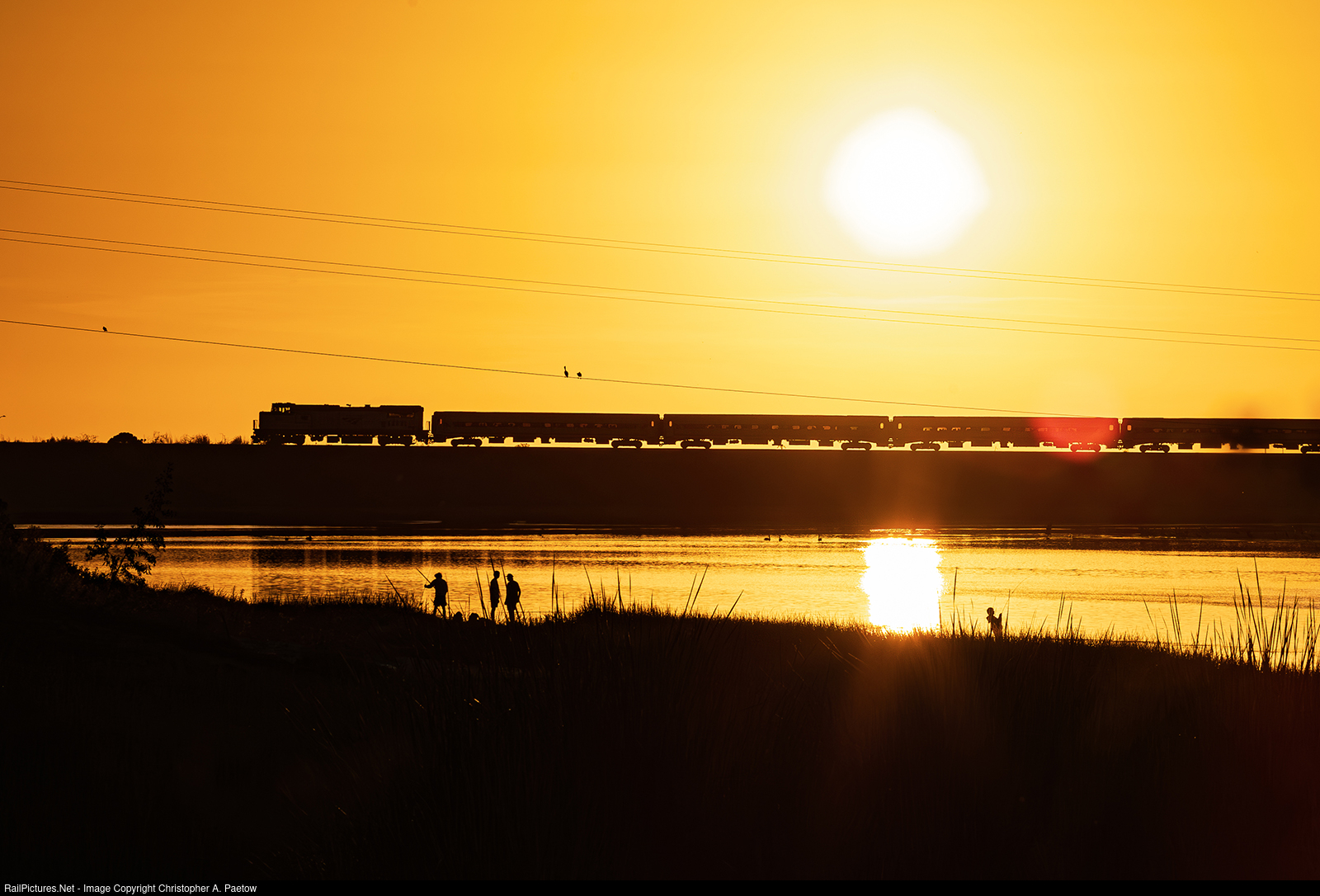 The spirit of Amtrak's long-lost San Diegan. AMTK 509 leads a late San Diego bound Amtrak 580 with the Amtrak California Comet Cars along South Ponto Beach crossing the Batiquitos Lagoon.