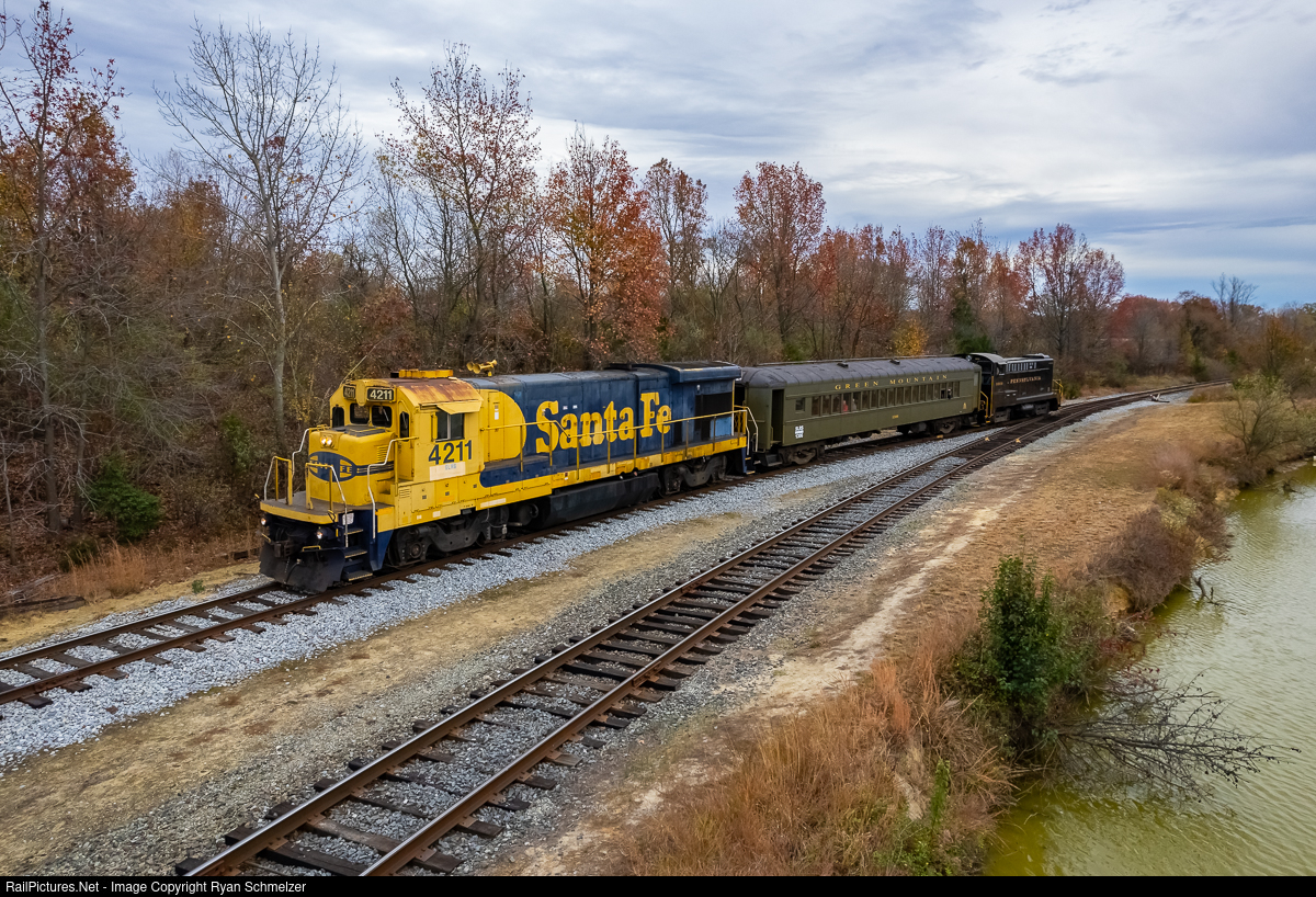 SMS Rail Lines and the Woodstown Central Railroad hosted a photo charter weekend in celebration of the 50th anniversary of Railfan & Railroad Magazine. The Sunday activities consisted of a tour of the SMS Rail Lines' shops as well a rare mileage excursion around the trackage of the Pureland Industrial Complex. SMS 4211, still wearing its Santa Fe paint, leads the train as it pulls into the turnaround point at Heritage Bag, the east end of the complex's track.