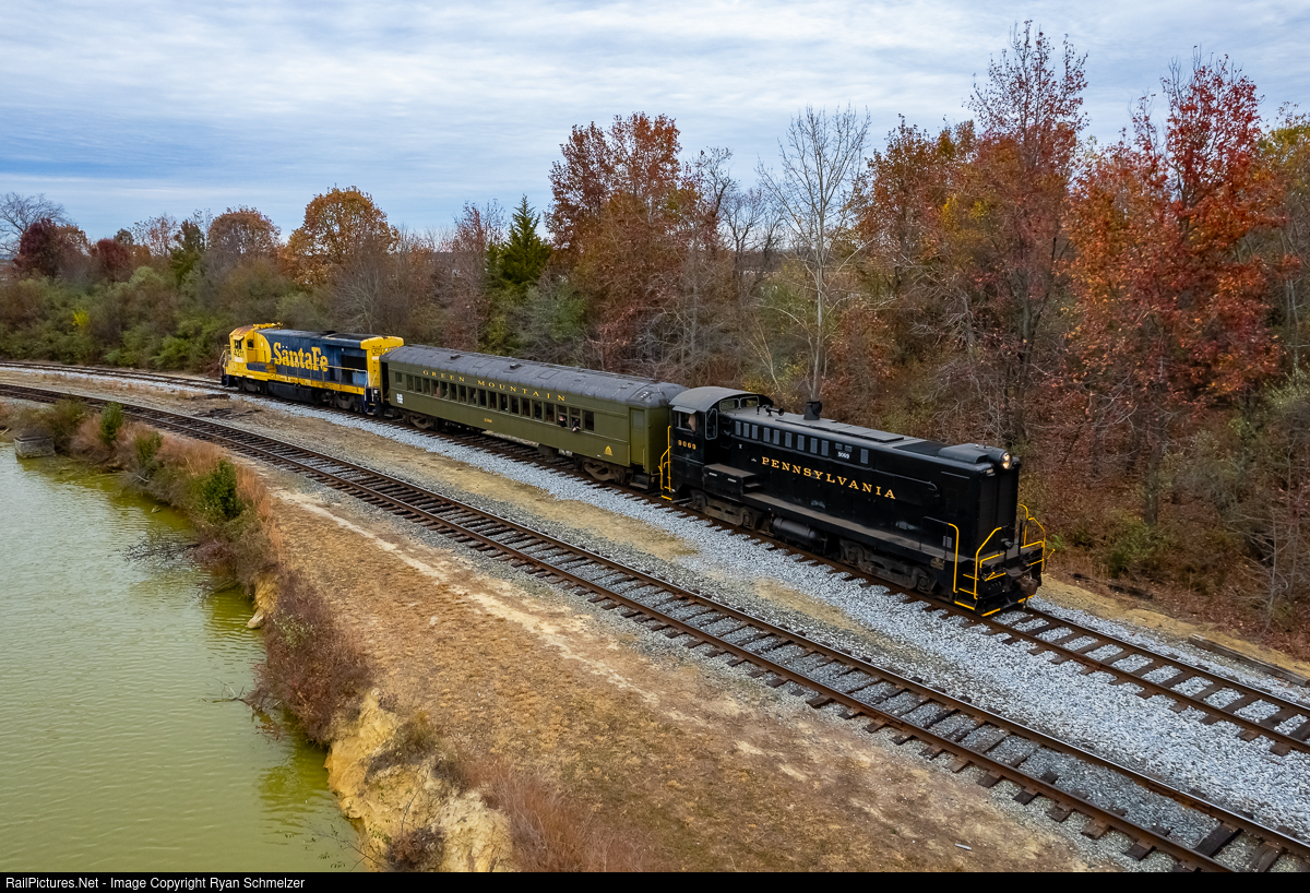 | SMS Rail Lines and the Woodstown Central Railroad hosted a photo charter weekend in celebration of the 50th anniversary of Railfan & Railroad Magazine. The Sunday activities consisted of a tour of the SMS Rail Lines' shops as well a rare mileage excursion around the trackage of the Pureland Industrial Complex. After reaching the east end of the line, PRR painted 9069 begins to lead the train back west. |
