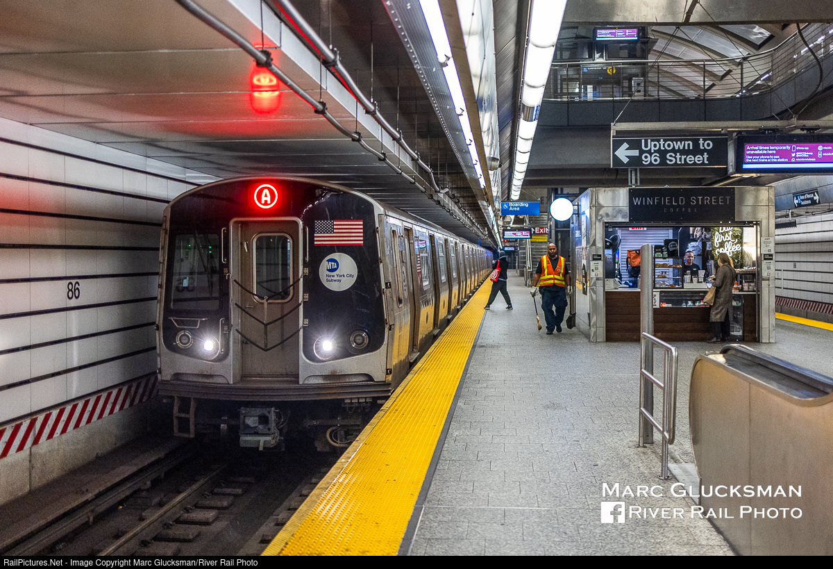 Coffee On The Go. For a number of overnights and a full weekend at the beginning of November, 2024, the A lIne was rerouted to use 96 Street-2 Avenue as its northern terminal while the Q was cut back to 42 Street-Times Square to accommodate a work project. This was the first opportunity to see Kawasaki R-211A cars operate over the 2nd Avenue Subway in revenue service. The A Line also has the distinction of using the oldest operating cars in the system, Pullman-Standards R-46s. On Saturday, November 9, 2024, there was an opportunity to see these cars along with the Bombardier R-179s together on the Upper East Side. Note the coffee shop on the platform, an unusual feature in the NYC subway.