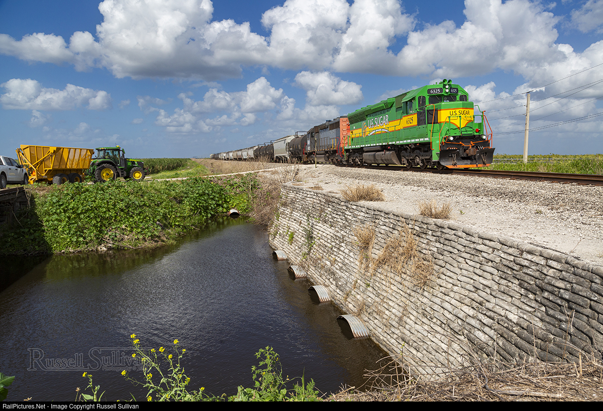 Initially built for the Penn Central Railroad in 1968, the 6325 has seen service on Conrail, Chicago & North Western, and Tacoma Rail before being acquired by US Sugar. The locomotive was delivered in the company’s new green and yellow scheme, which will replace the current gray and yellow scheme found on the rest of the fleet. The 6341 still wears its patched Southern Pacific "bloody nose" paint scheme from the 1990s.