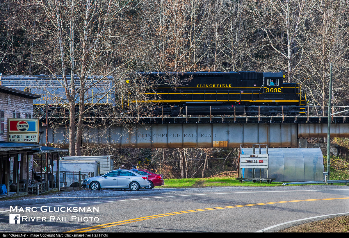 Riverside Grocery. One of the great retail oriented scenes on the Clinchfield Railroad portion used by The Santa Train is Riverside Grocery on Dickenson Highway in the "company town" of Clincho, Virginia. While Riverside Grocery is presently closed, on November 17, 2017, it was still open and selling Pepsi products next to the bridge with the railroad's name spanning the highway when the deadhead move of the consist passed on the way from Kingsport, Tennessee to Shelbiana, Kentucky. That year was the 75th Anniversary of this holiday season tradition, and was celebrated by CSX by restoring and repainting CRR 800 (built as an F3, rebuilt as an F7), the first diesel owned by the Clinchfield Railroad, and SD45 CRR 3432 (née-SCL 2024), which in reality was never part of the CRR roster, but makes an excellent stand in for the purpose. Both units are owned by the Southern Appalachia Railway Museum today.