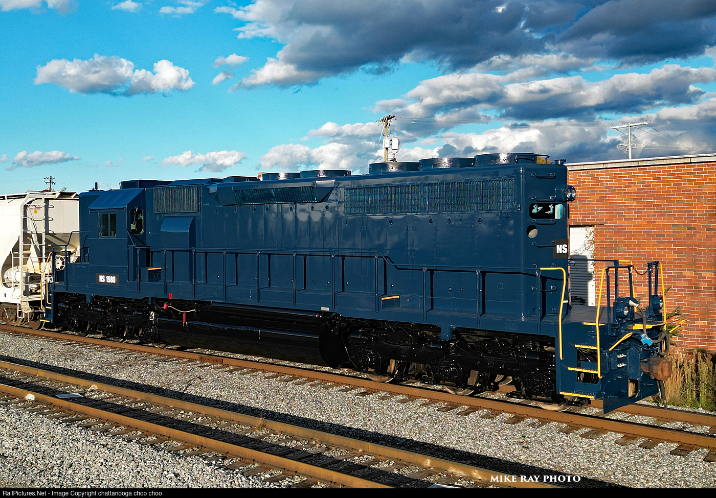| NW SD40 # 1580 in fresh paint at Chattanooga Tn. 1580 was painted by TVRM , and the final details will be added by the Roanoke Chapter of the NRHS. |