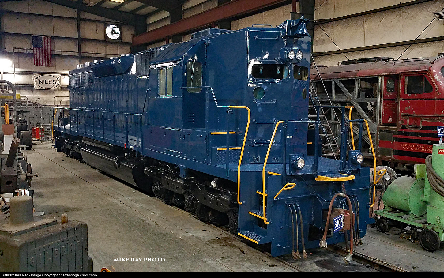 | NW SD40 # 1580 in fresh paint at Chattanooga Tn. 1580 was painted by TVRM , and the final details will be added by the Roanoke Chapter of the NRHS. |