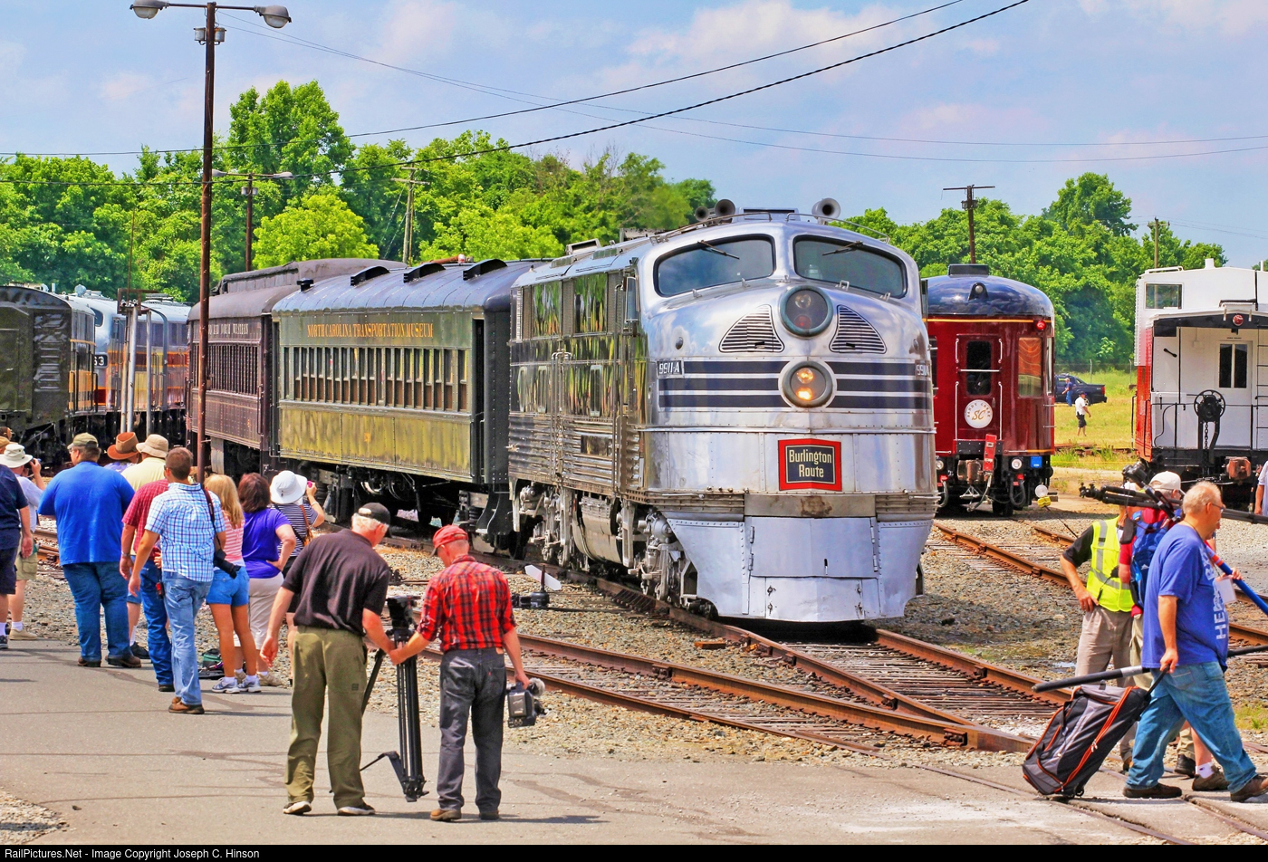 | Chicago Burlington & Quincy Railroad EMC E5(A) #9911-A was a popular attraction at the Streamliners at Spencer evet in 2014. I had to wait awhile to get an unobstructed shot of her before she pulled a passenger train. |