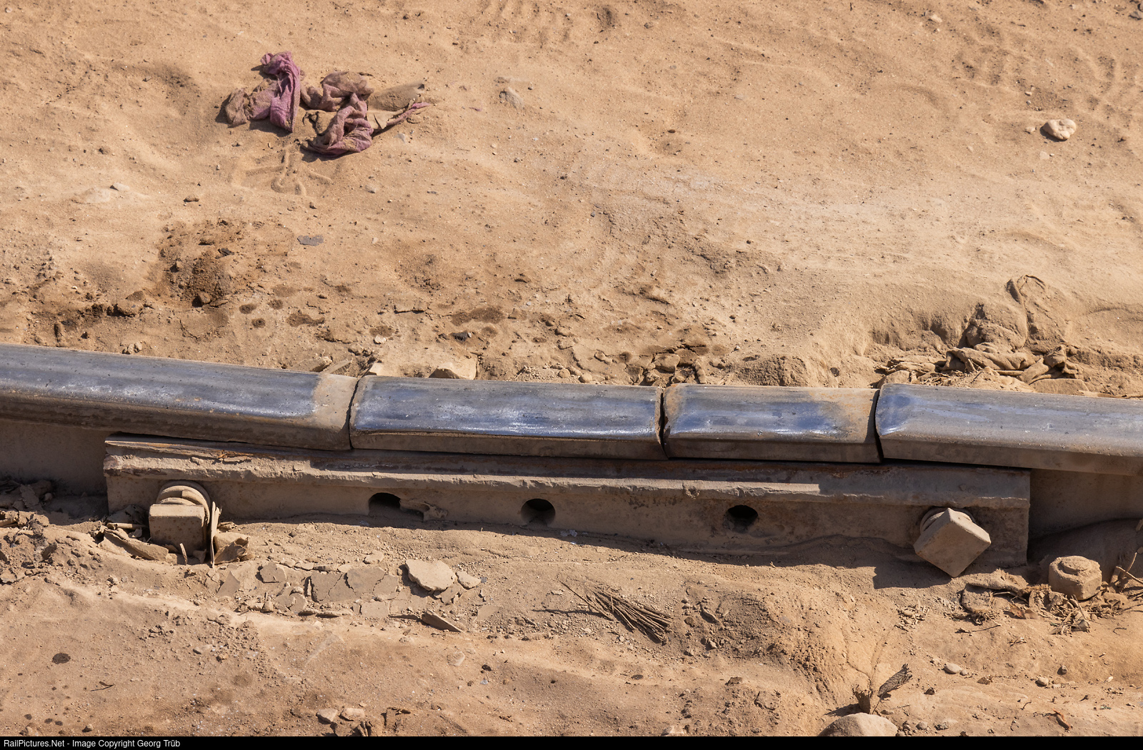 The SNIM railroad line is currently being expanded from a maximum axle load of 26 tons to 30 tons. But the track is not in good condition everywhere. Here in a side track near the workshop in Nouadhibou.