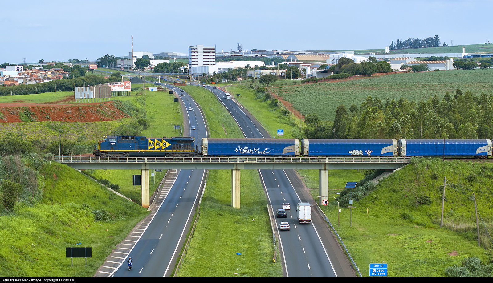 | MRS Cellulose train B50, led by AC44i #7271 crosses the viaduct over W. Luiz Higway, between Rio Claro and Cordeirópolis. |