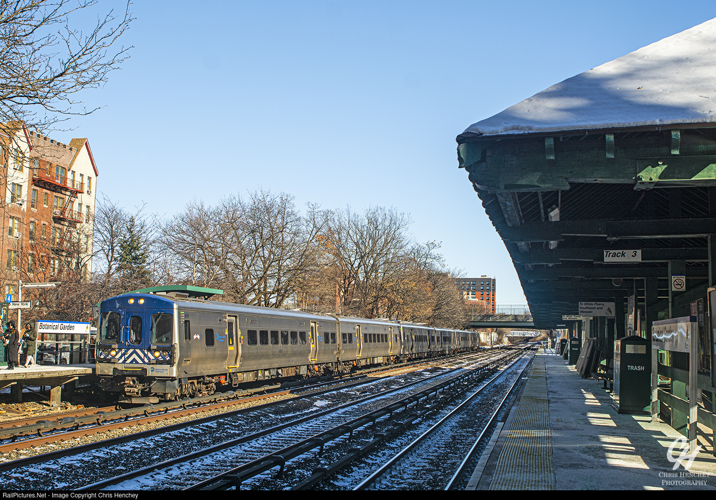 Another Harlem Line train stops at Botanical Garden in the Bronx, heading towards Grand Central in Midtown on a cold December morning.