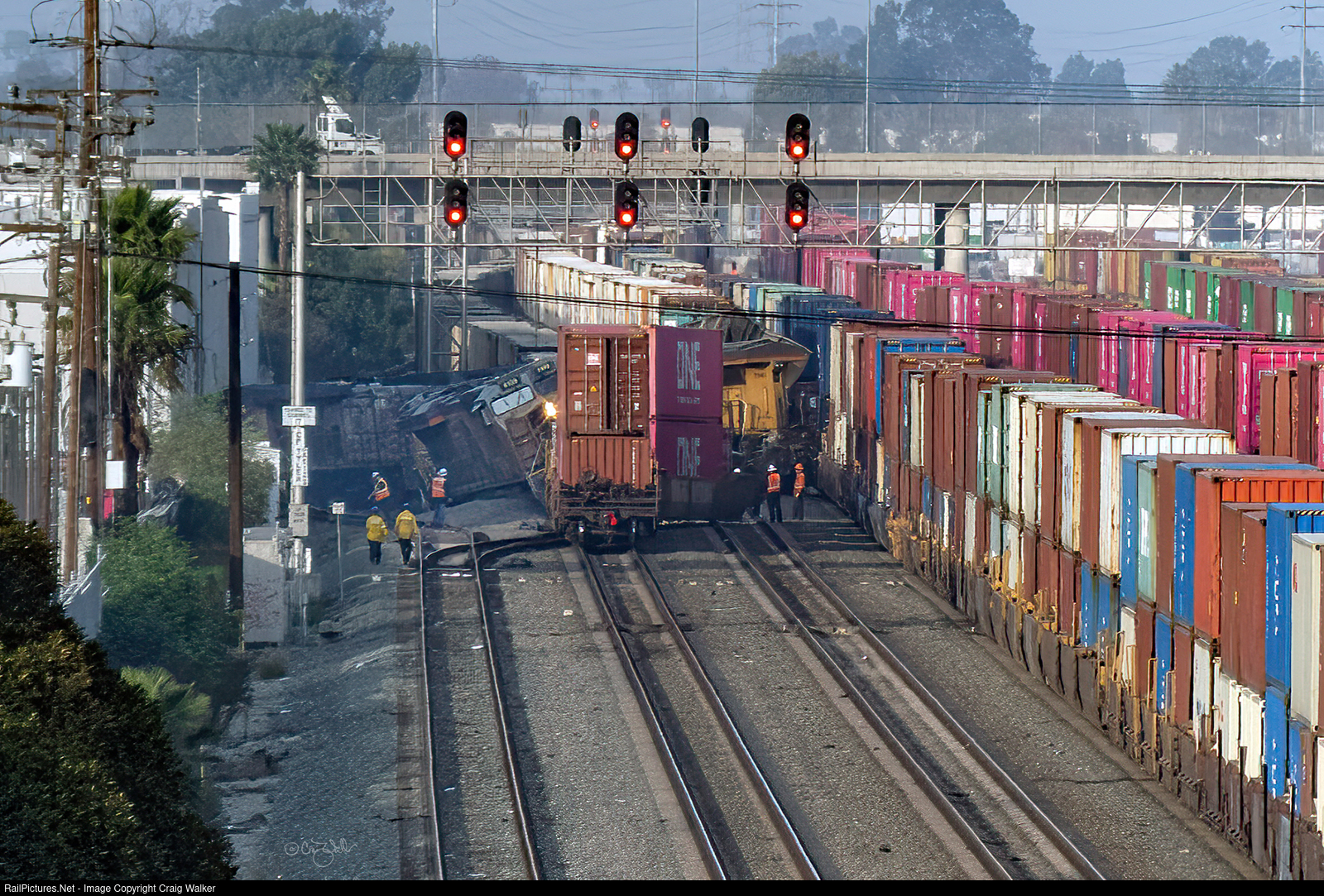 Details are still a little sketchy, but on Monday, 12/23/24, Union Pacific ore train OUTS1 (Iron Springs, UT (near Cedar City) to the Los Angeles/Long Beach Harbor) ran through a red signal at Control Point Tyler, on the Alameda Corridor, and struck an intermodal train … or, possibly, two. Fortunately, there were no injuries. It appears that the ore train had UP ES44AC 8109, AC4400CW 7255, AC4400CW 5956 and and ES44AC 7941 for power (up front, with UP 6401, 8754 and 7849 85 cars in, and UP 7041 and 8230 on the rear).