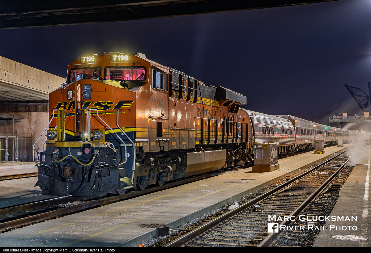Boxing Day Delivery. It was a cold post Christmas day eve on December 26, 2020 when BNSF 7196 (ES44C4, GE) was sitting in Amtrak's Chicago, Illinois Yard with a long string of brand new Siemens Venture coaches. The design of the cars is based on the Siemens Viaggio Comfort model sold in Europe, and they were first purchased and put into service by Brightline in 2018. Amtrak Midwest purchased 88 cars to go along with SC-44 locomotives and replace the mix of AmFleets, Horizons, and Superliners that serve the state supported routes in Illinois, Michigan, and Missouri. The first cars from this class entered revenue service on Amtrak in 2022.