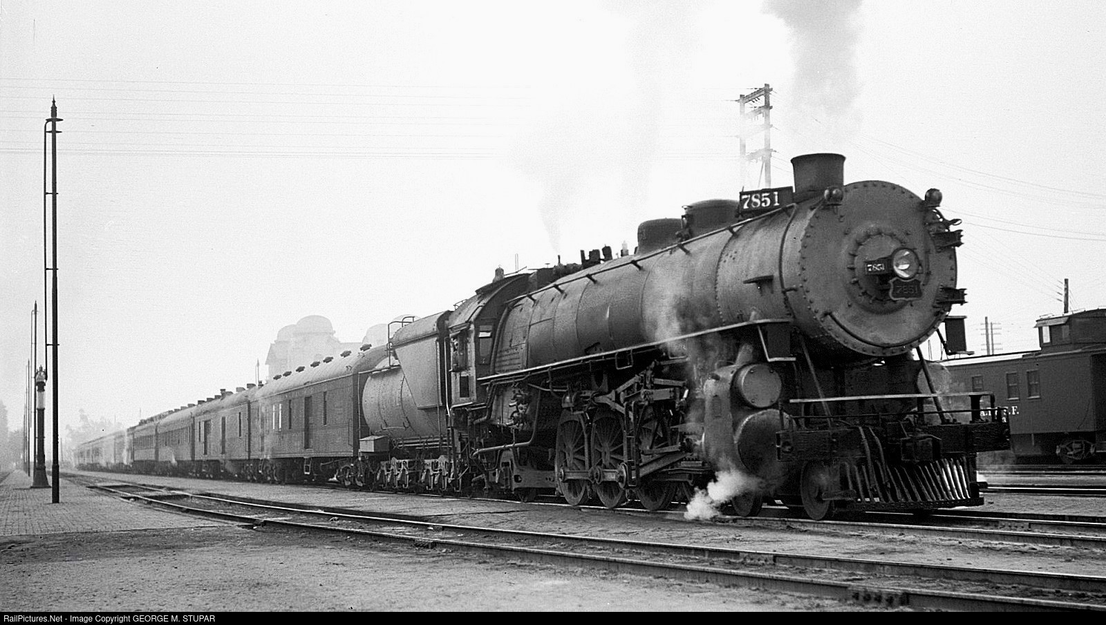 Union Pacific 4-8-2 7851 is in charge of eleven cars at San Bernardino California in 1934. Otto Perry photo, from my collection.