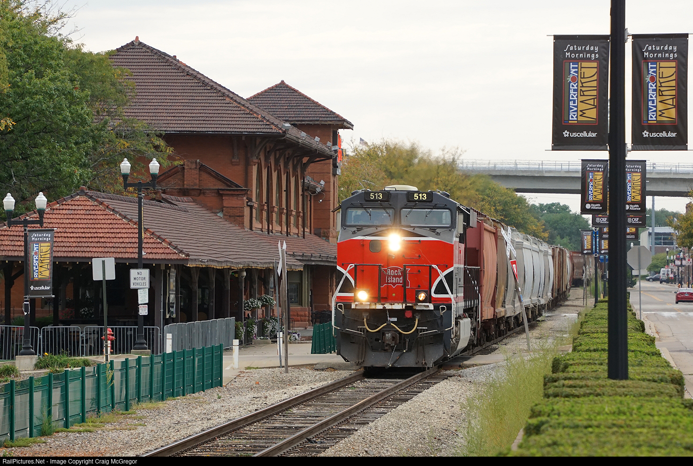| Iowa Interstate's Rock Island heritage locomotive runs along side the former Rock Island Peoria passenger station which was opened in 1900 and served passengers until 1967. This is the former destination of the Chicago to Peoria "Peoria Rocket" and in 1978 was listed on the U.S. National Register of Historic Places. Today, you can get a window seat at the Blue Duck Barbecue Tavern (in the station building), have a great meal, and maybe see a train pass by. |