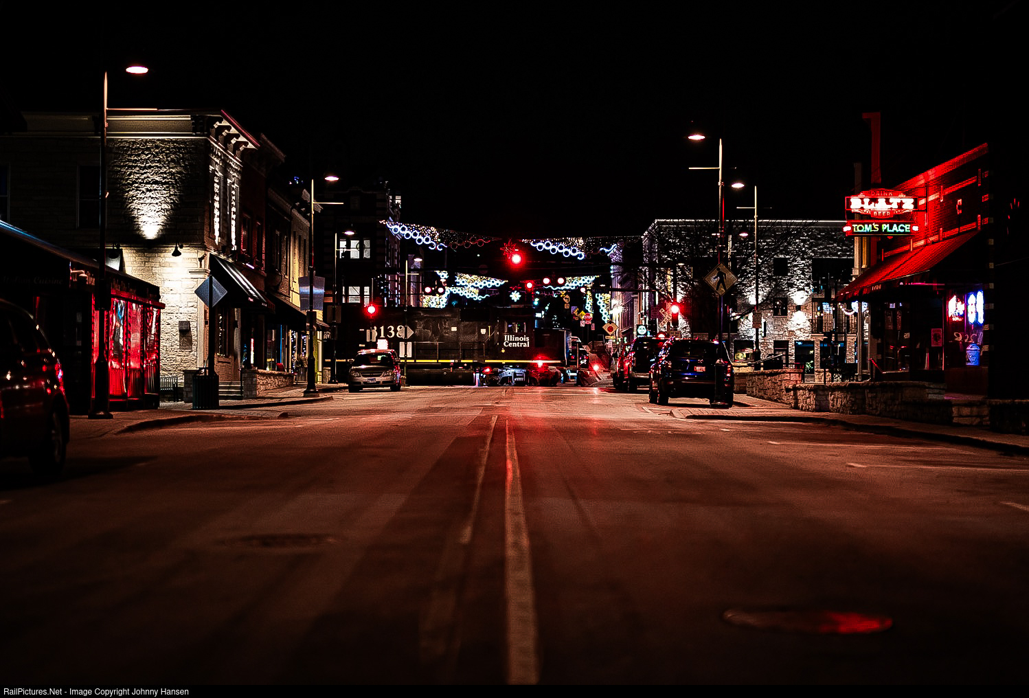Down The Main Street. After some switching at KA Steel (Olin Chemical), the Millsdale Oil Local, L545, crawls through historic Downtown Lemont due to PTC restrictions up to Flagstone while on their way to Millsdale. L545 is a nighttime local, so its switching operations don’t interfere with daylight Metra and Amtrak traffic, and operates out of Glenn Yard Sunday through Friday nights. It services many oil refinery’s along the I&M Canal between Chicago and Joliet, and one just south of Joliet along the BNSF Chillicothe Subdivision at Millsdale. A duo of former Illinois Central GP40R’s guide the nights train south, numbers 3138 and 3106, with the 3138 being one of a handful that still wears its Illinois Central livery, many years after Canadian National acquired the Illinois Central in 1999.