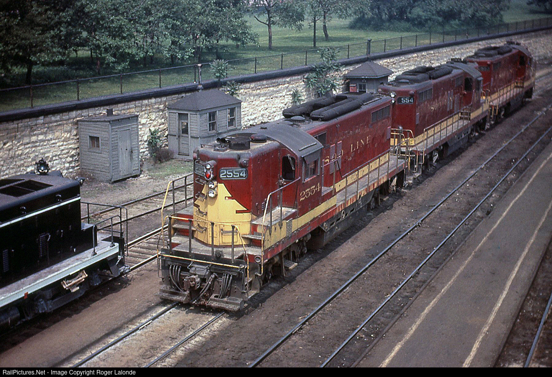 Soo's GP9's 2554, 554 and 553 are resting between runs of the overnight Chicago-Superior, Wisconsin LAKER at Chicago on June 3, 1963. In January 1963, the Soo moved out of Grand Central Station for the last time, transferring the LAKER over to the lakefront Central Station of the Illinois Central Railroad. Photo by George Berisso, from my collection.