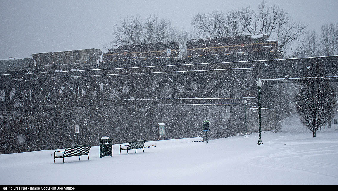 It's a snowy January day as LIRC's JXTR returns to their Jeffersonville yard.
