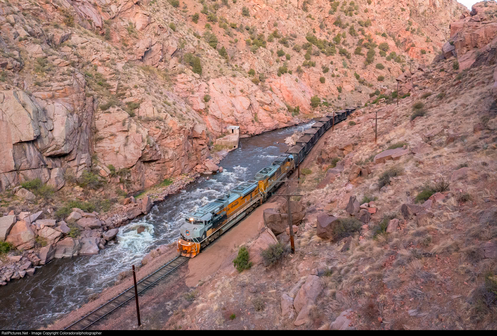 Deep in the Royal Gorge, Rock N Rail with UP 1989 on the lead. Made for a delightful morning in the canyon. |