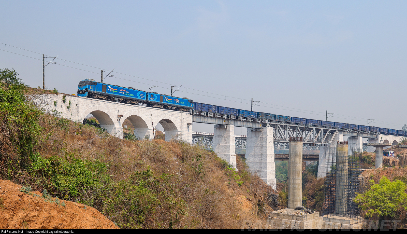 My first capture of WAG-12B, one of the powerful locomotive in the world, rolling with empty freight over Majhigouri Rayagada railway bridge