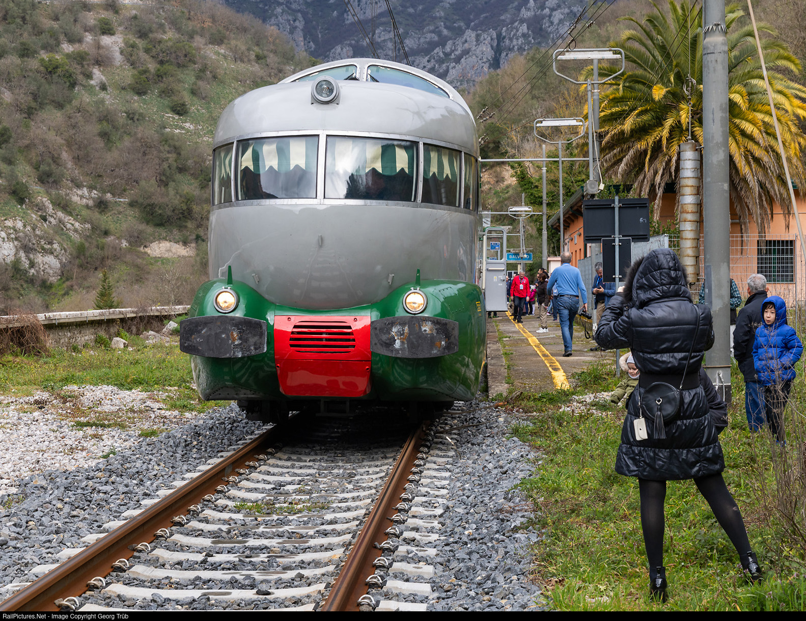 Apparently it had become known that the legendary ETR 252 “Arlecchino” high-speed railcar of the Fondazione FS Italiane would be making a photo stop at Balvano station in the province of Potenza that day. In any case, numerous people from the village of only around 1700 people up in the mountains gathered at the station. The stop lasted only 5 minutes, then peace returned to the valley of the Platano river. The train journey this day was from Bari via Taranto-Metaponto-Potenza-Battipaglia-Salerno-Napoli-Frosinone to Roma Termini. In Balvano, there are 3 trains a day stopping only, two in the morning to Potenza, one in the afternoon to Salerno. Balvano was the site of one of the greatest tragedies on the railroad. In March 1944, during the Second World War, over 500 people were killed when the steam train 8017 with 47 freight cars and two steam locomotives came to a protracted halt in the Armi Tunnel about 2 kilometers uphill from the station and people died of carbon monoxide poisoning. The Balvano train disaster was the deadliest railway accident in Italian history and one of the worst railway disasters ever.
