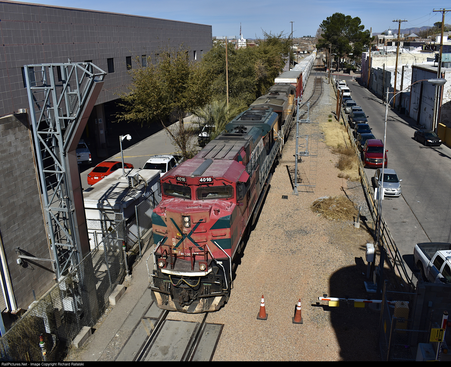 | Just feet away from the Mexican boarder, FXE 4016 leads the MTUNG up to the crew change checkpoint where the UP crew will hand off the train to an FXE crew waiting just beyond the gate. The fact you can stand on a pedestrian bridge and watch/film/photo the entire operation is beyond me, but when the border patrol agent says you're good to be up there, you don't question it! |