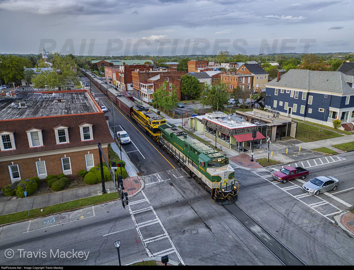 Southern and Virginian Heritage Engines leading NS 955 down 6th Street in Augusta