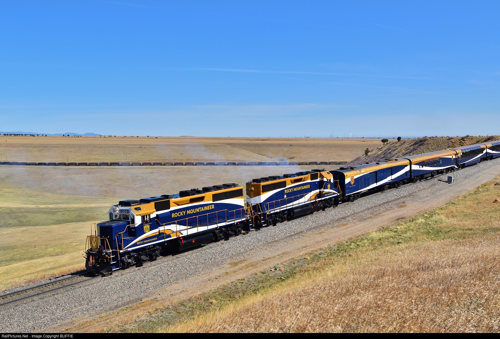 RailPictures.Net Photo: RMRX 8021 Rocky Mountaineer Railtours EMD GP40-3 at Rocky, Colorado by BUFFIE