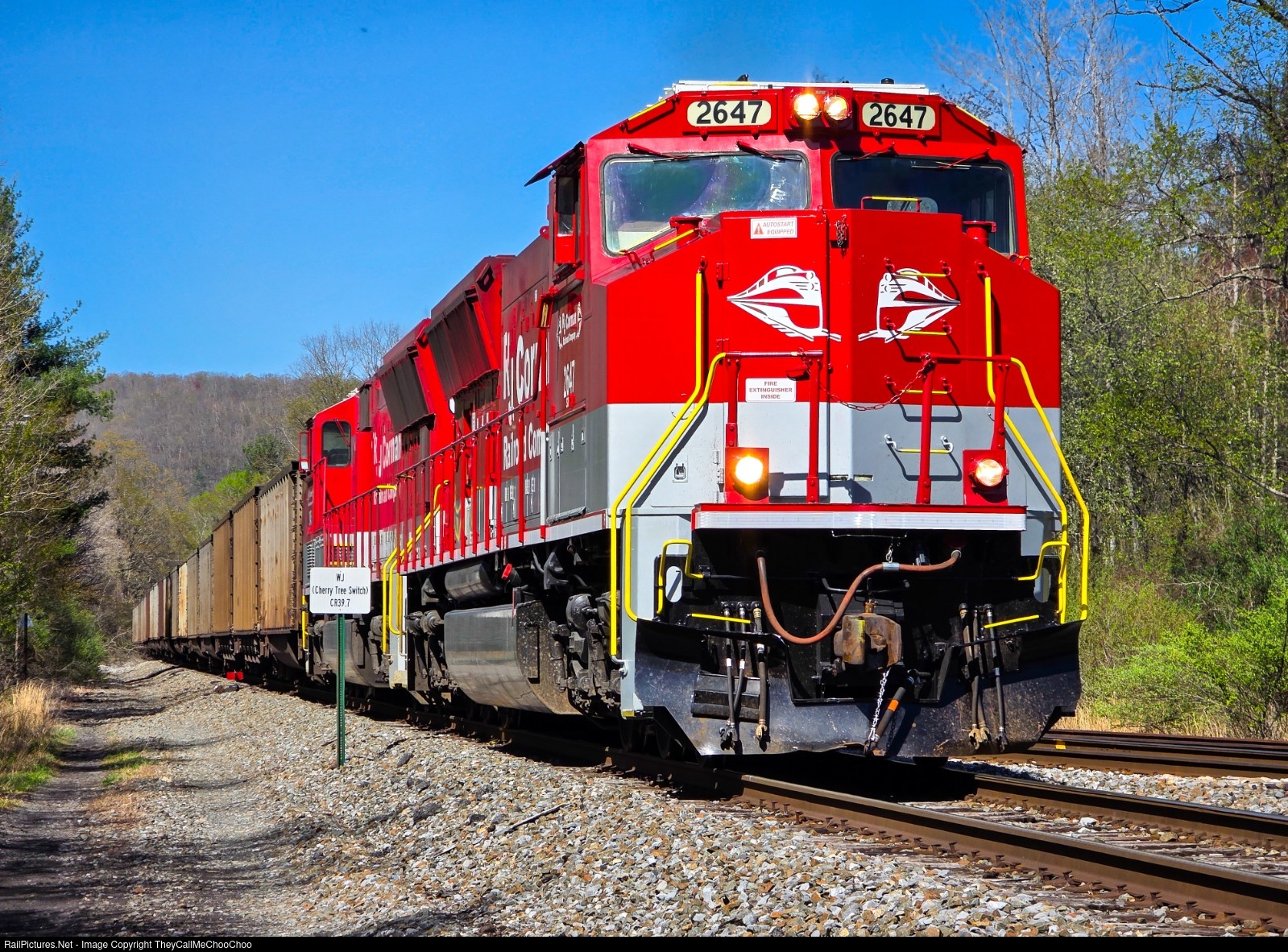 | Switching off the Cresson Subdivision, the Clymer empties begin their journey down the Cherry Tree Subdivision on a beautiful spring afternoon. |