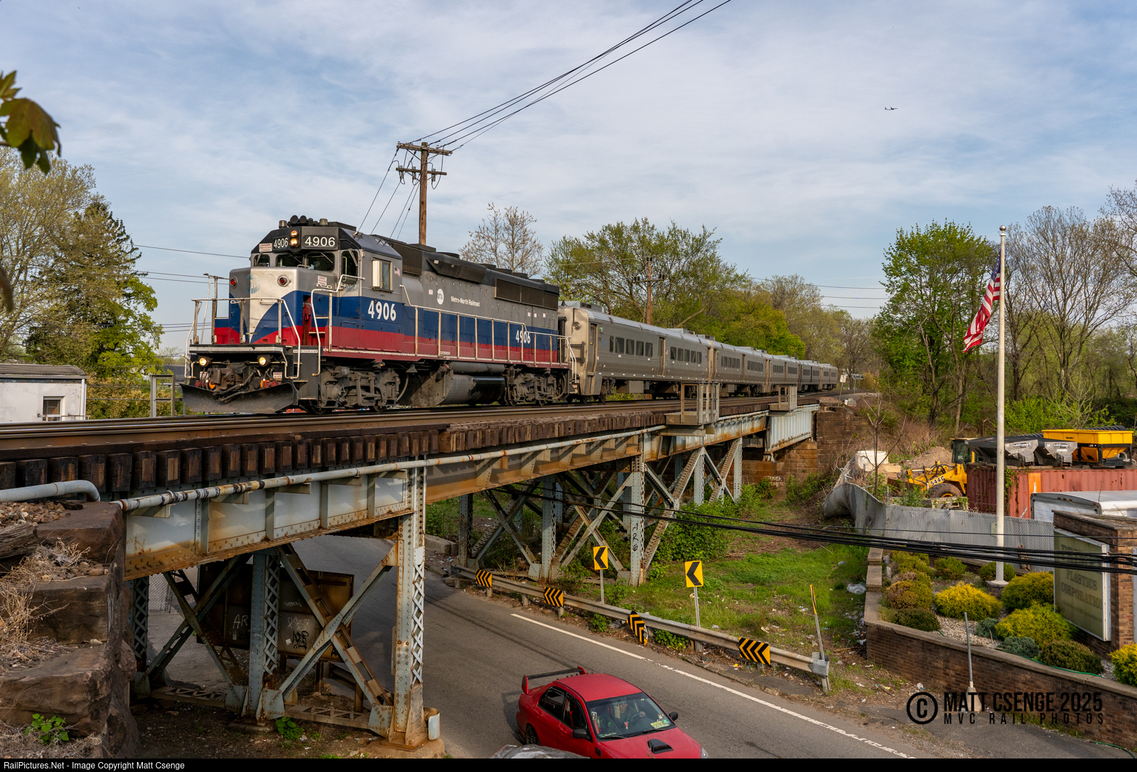 Metro-North Railroad GP40PH-2M no. 4906 is seen leading Port Jervis Line train 55 into Garfield, NJ as it crosses the Saddle River and adjacent River Dr. |