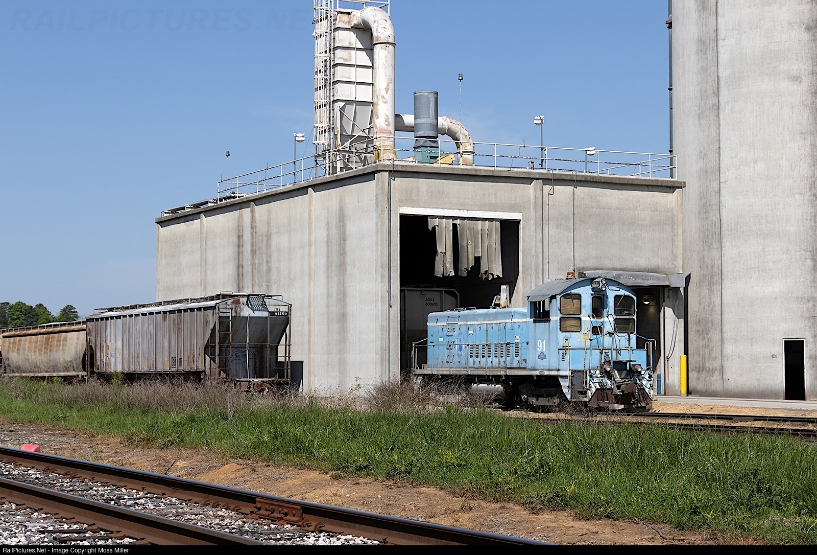 | EMD SW900, LC #91, the resident switcher used to load cars at the Circle S Feed Mill at Richburg, SC. |