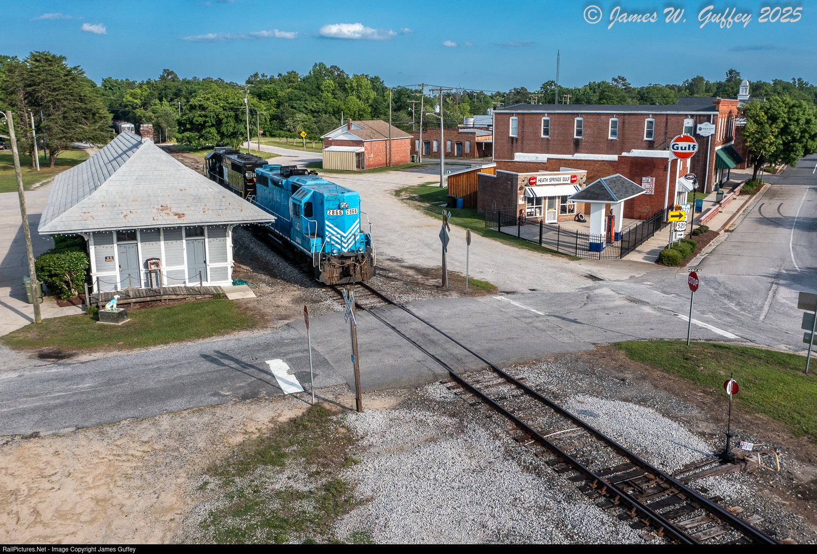 Lancaster and Chester train 14 is tied down at the Heath Springs depot on the former Southern Railway SB line. The only customer south of here, ADM at Kershaw, is scheduled to close at the end of May, so the future of operations south of Heath Springs is uncertain.