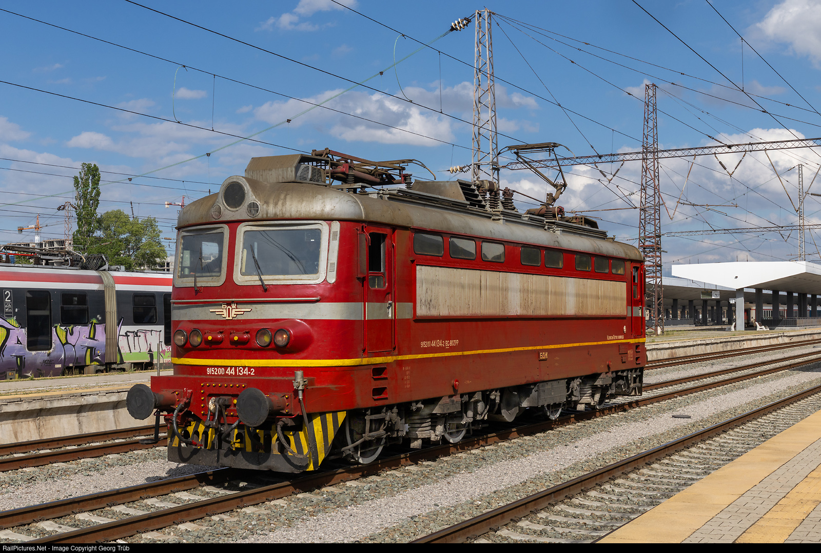 | Electric locomotive 44 # 134 of the BDZ for 25000 V 50 Hz AC, built by Skoda/Czechoslovakia in 1980. The BDZ had 89 of this type. |