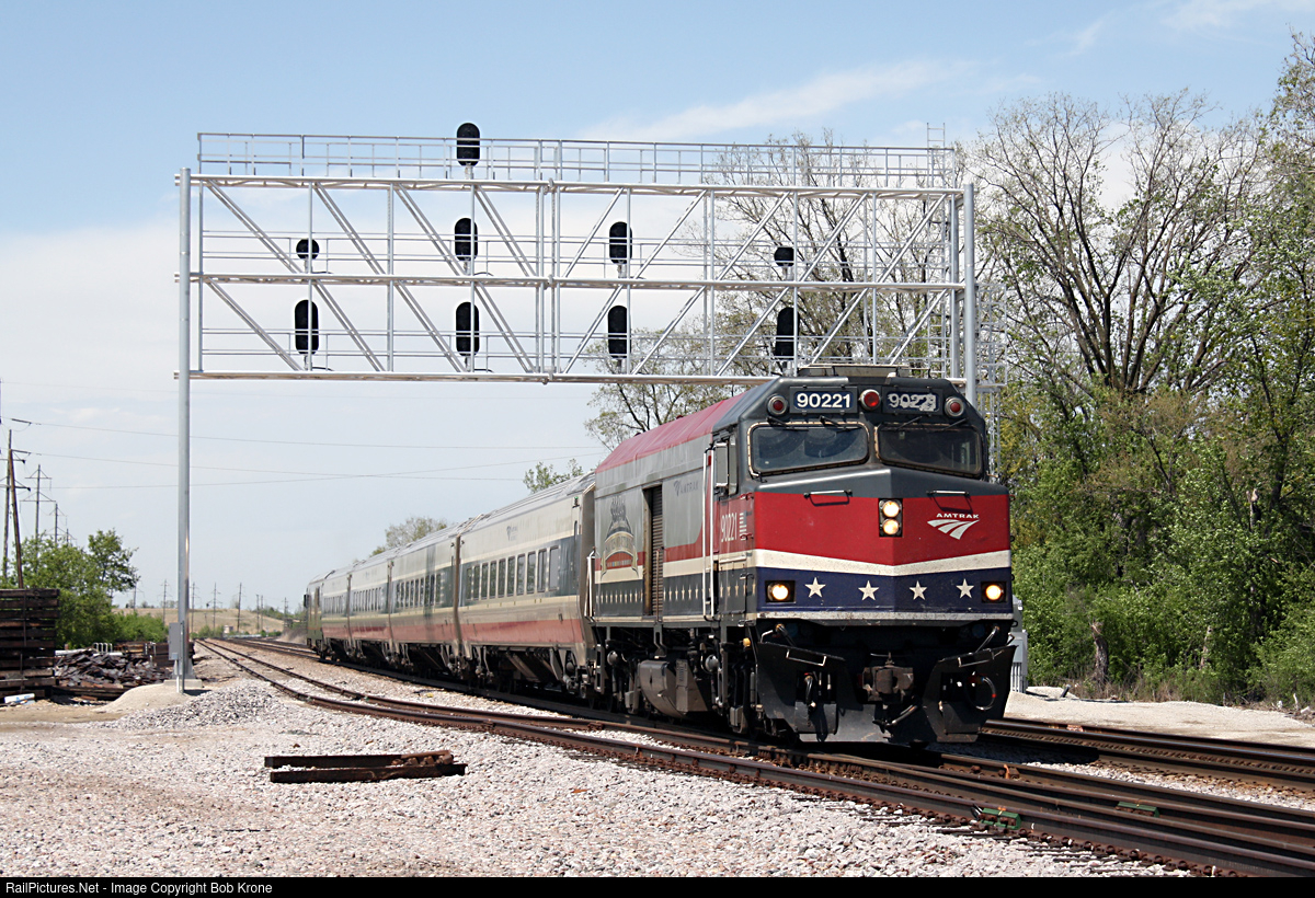 | An Amtrak Midwest train is southbound at Rondout with a non-powered control cab painted for veterans. I stopped while on my way to the annual Center for Rail Photography and Art annual conference in Lake Forest. |