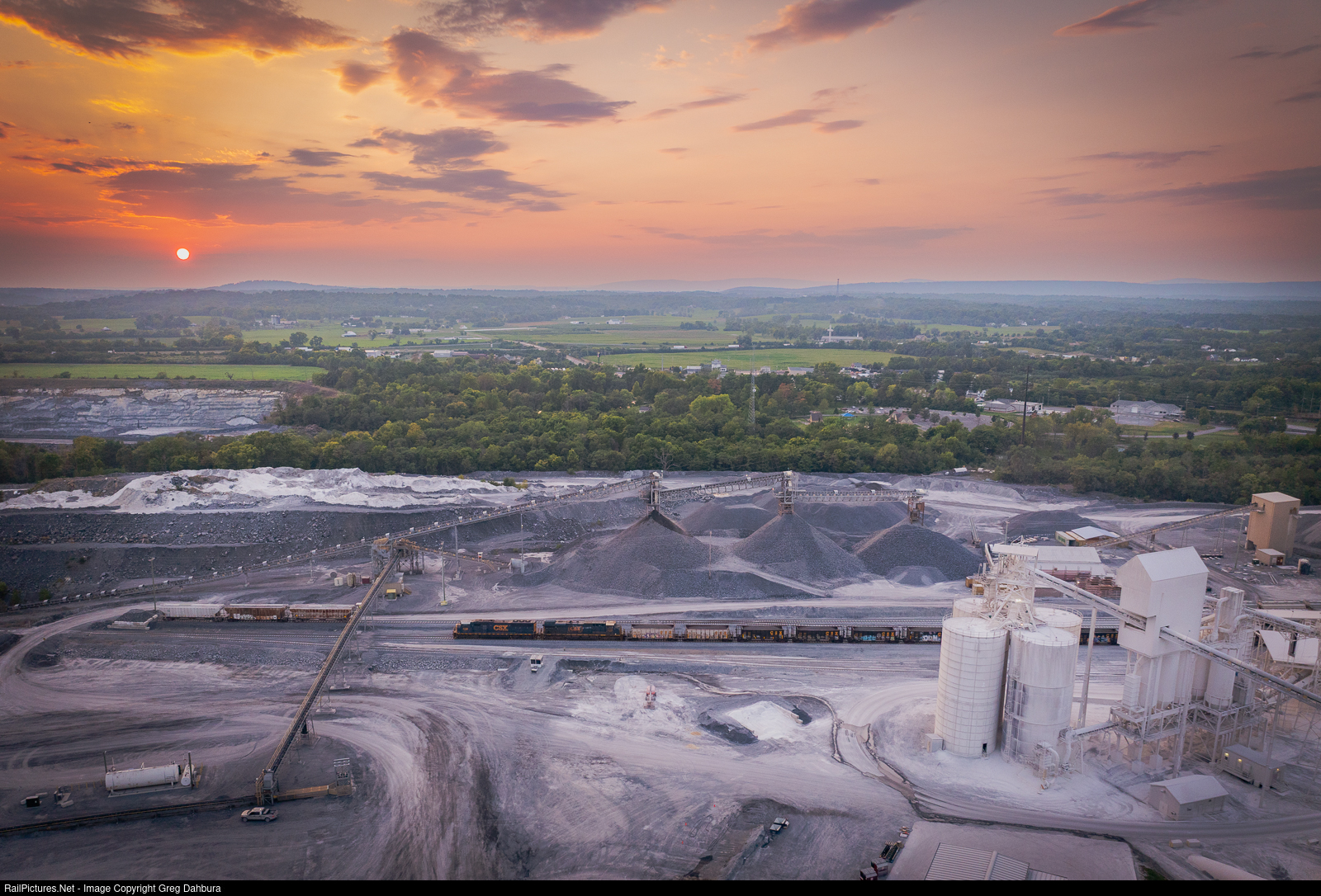 B495 heads into the plant at Carmeuse with a recent SD70MAC rebuild leading and a nice sunset in the background.