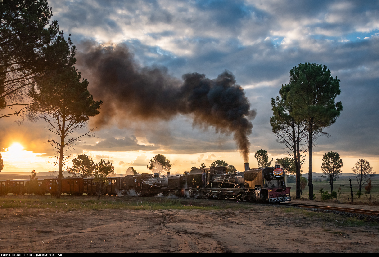 | Late on a pleasant Saturday afternoon, as the last rays of sunlight bathe the landscape, the final train of the day—hauled by Class NGG16 No. 113 and NGG13 No. 49—climbs the steep ‘S-curve’ between Sekonyela and Blue Gum Halt. |
