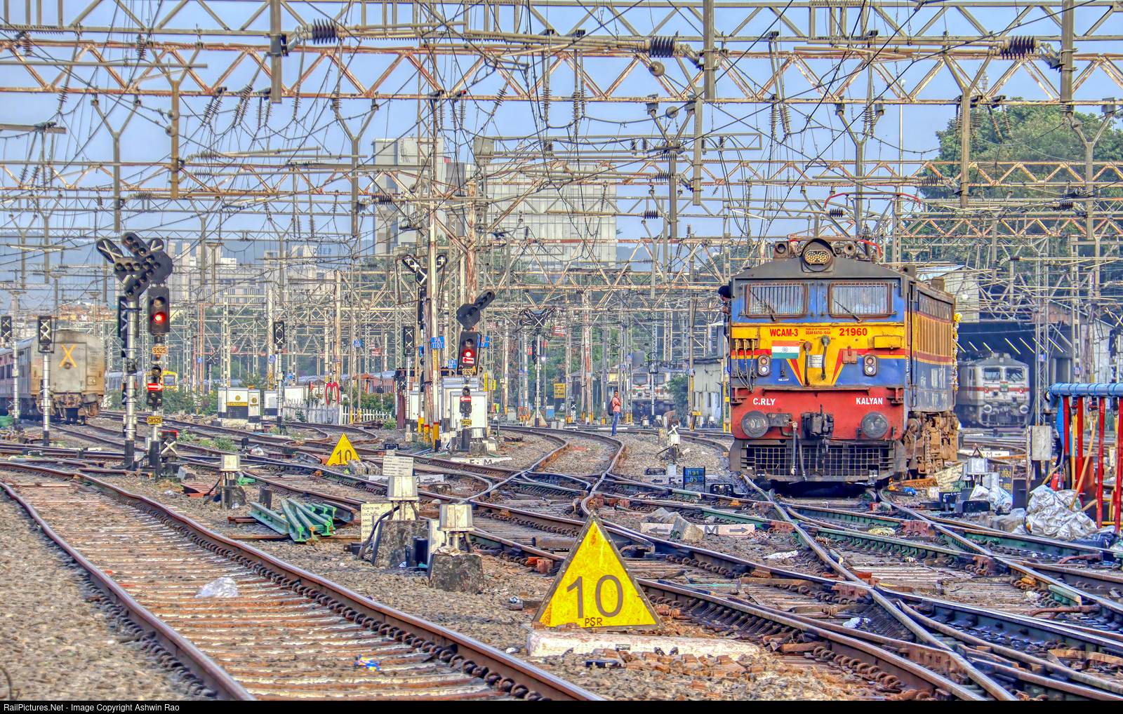 | An action packed image during the busy morning hours at Pune Junction. The WCAM3 #21960 is the link for 12124 Pune Mumbai Deccan Queen (1 st June is the birthday of the Decaan Queen) that eventually departed post celebrations. There are couple of WAP7 locomotives awaiting for their assignments. Meanwhile the Lonavala Pune EMU can be seen at a distant halted at the home signal and rakes stabled in the stabling lines to the left. The yellow board of 10 implies the Permanent Speed Restriction of 10 Kmph on the loop turn outs. Pune Junction. |