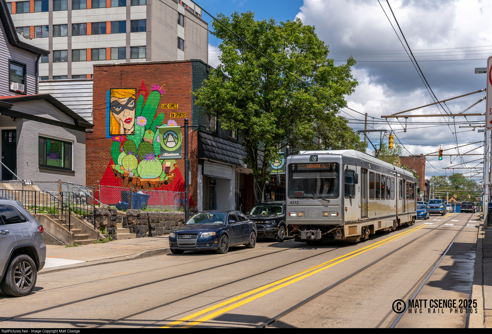 Pittsburgh Regional Transit (PRT) CAF LRV no. 4312 is seen rolling along Warrington Ave on the Allentown Line.
