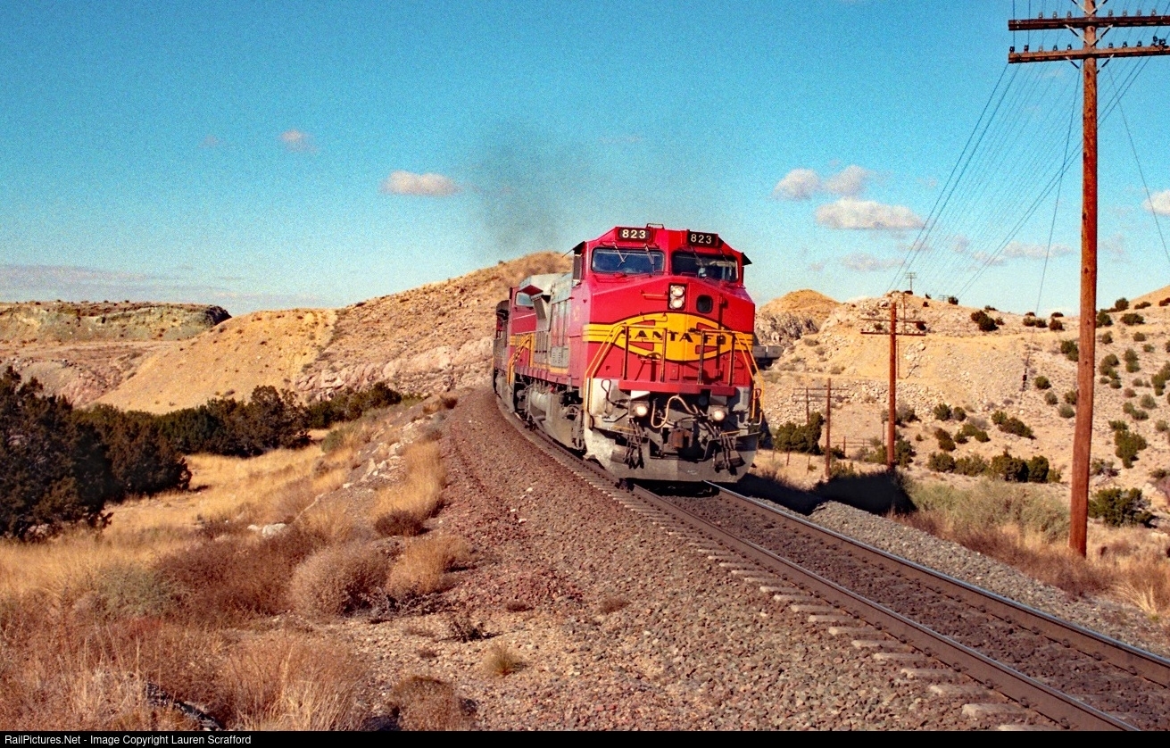 RailPictures.Net Photo: ATSF 823 Atchison, Topeka & Santa Fe (ATSF) GE C40-8W (Dash 8-40CW) at Abo Canyon, New Mexico by Lauren Scrafford