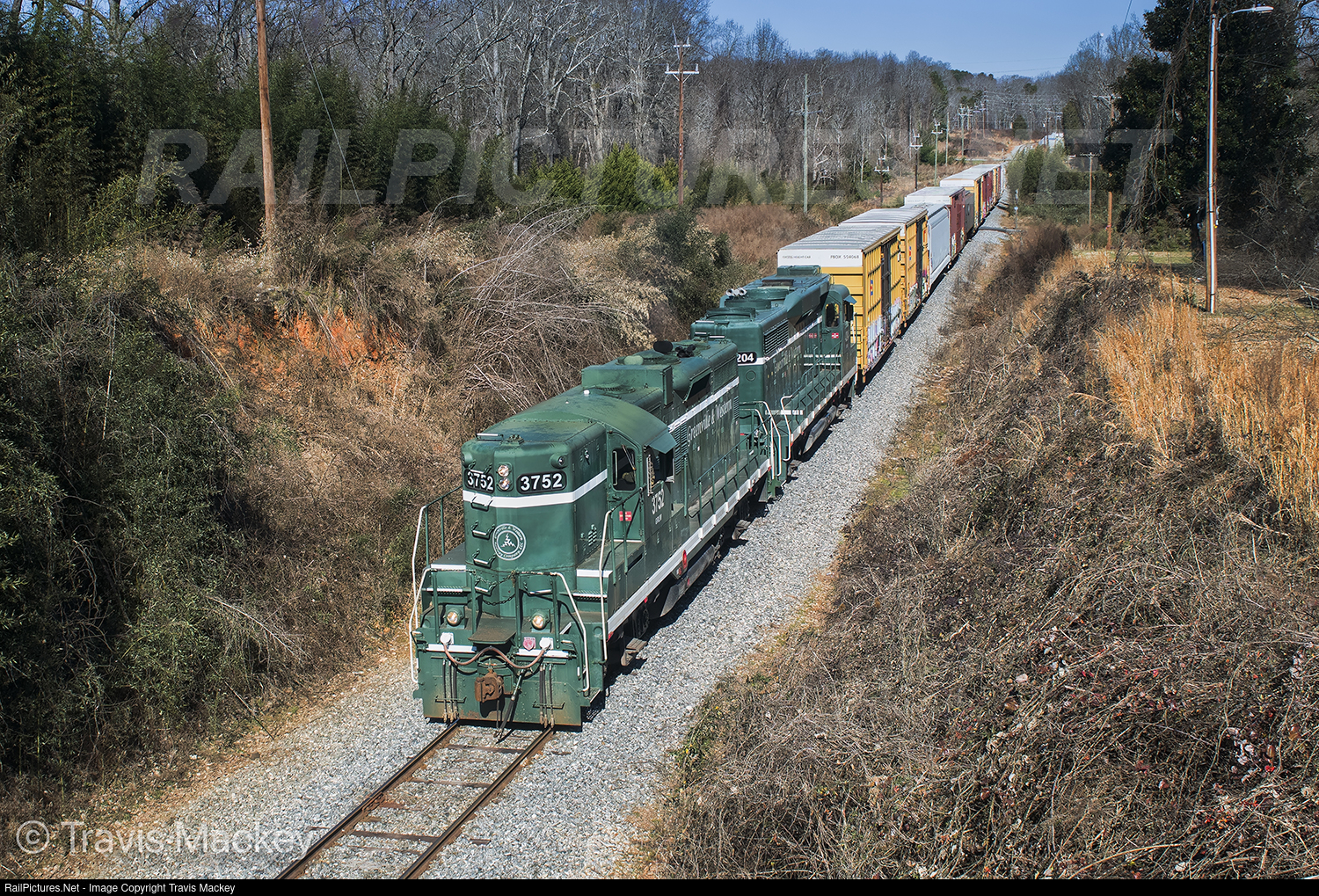 RailPictures.Net Photo: GRLW 3752 Greenville & Western EMD GP9 at Belton, South Carolina by Travis Mackey
