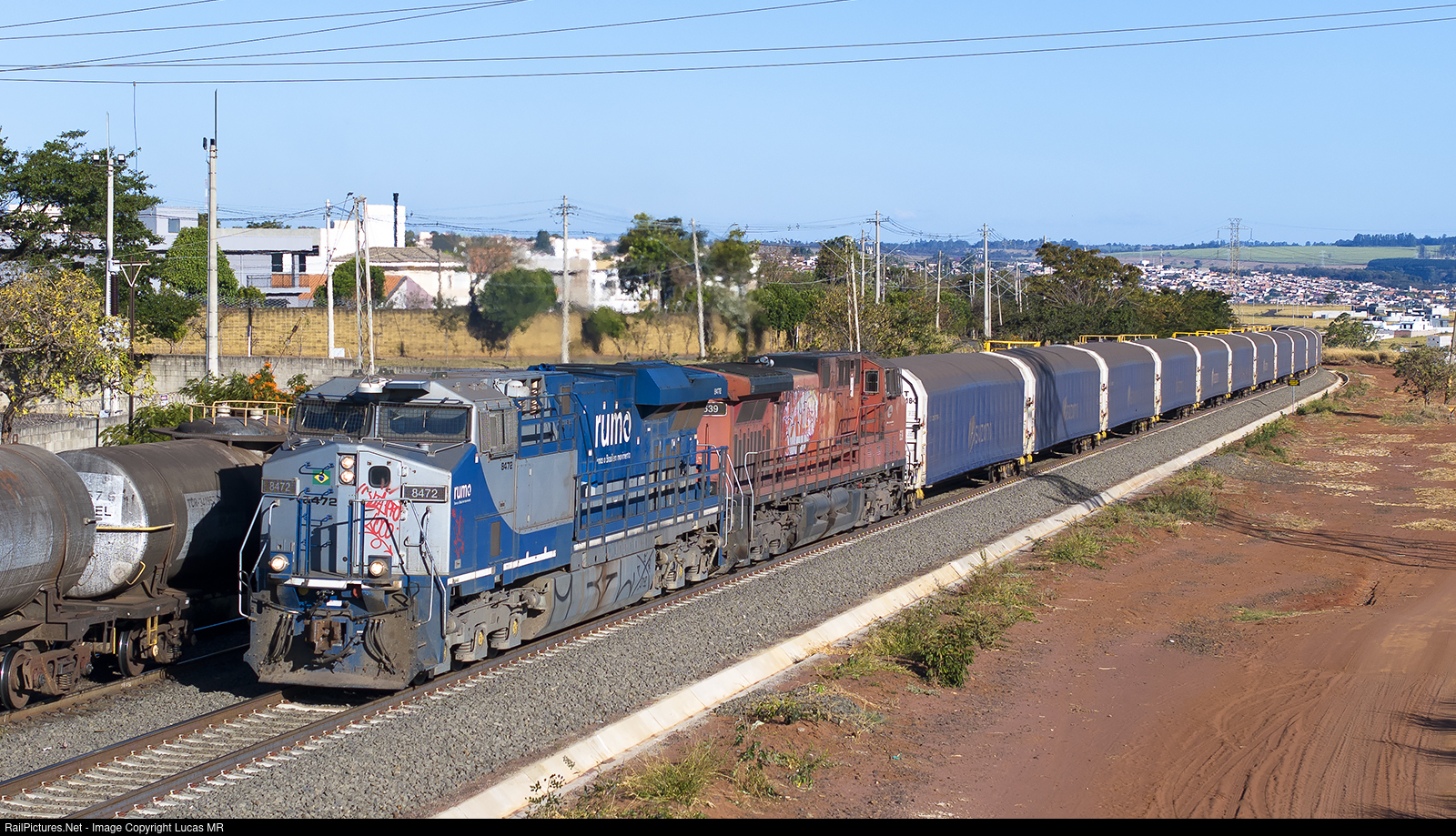 | ES44ACi #8472 led train L49, photographed in the track section Km 210, overtaking tanker train T52. |