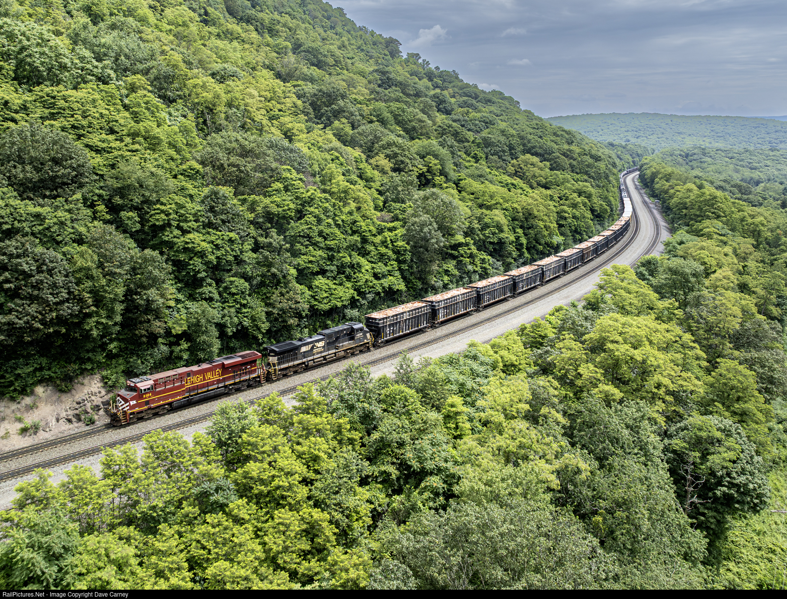 The Lehigh Valley heritage unit leads 39G upgrade through Horseshoe Curve.
