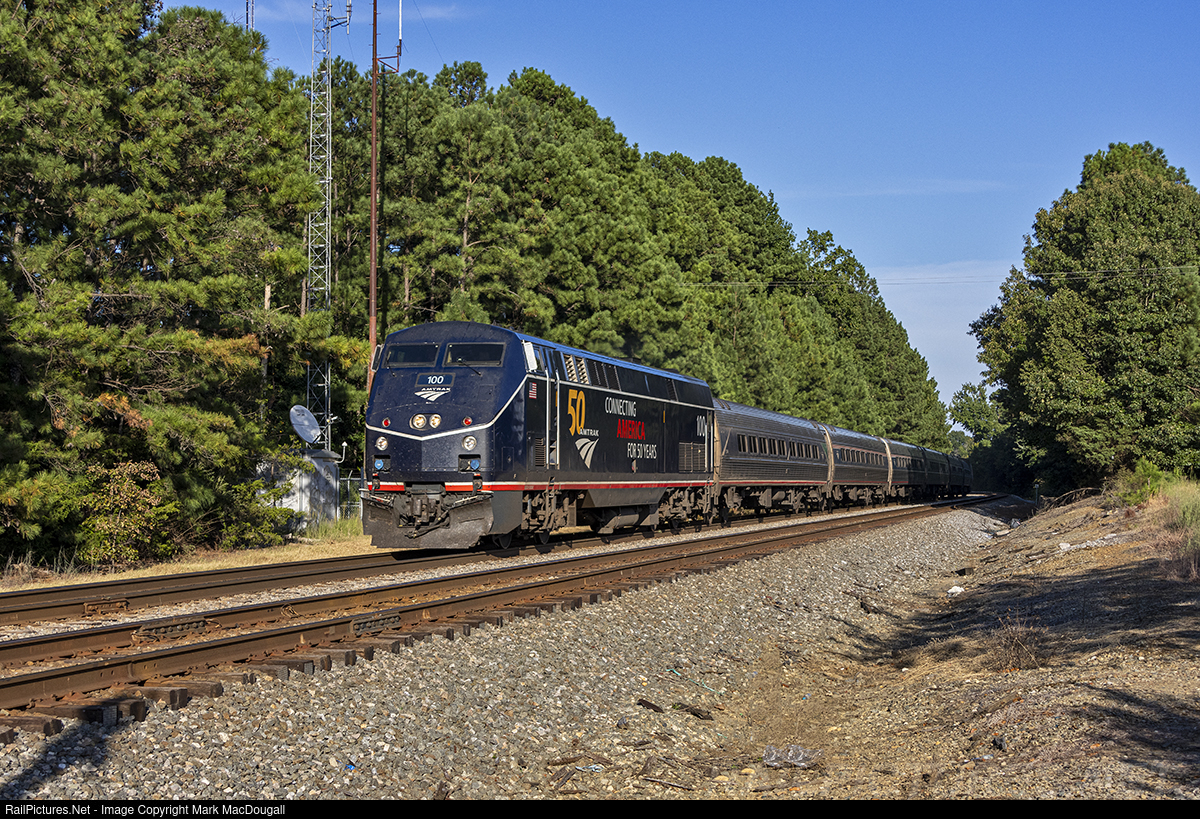 RailPictures.Net Photo: AMTK 100 Amtrak GE P42DC at Raleigh, North Carolina by Mark MacDougall