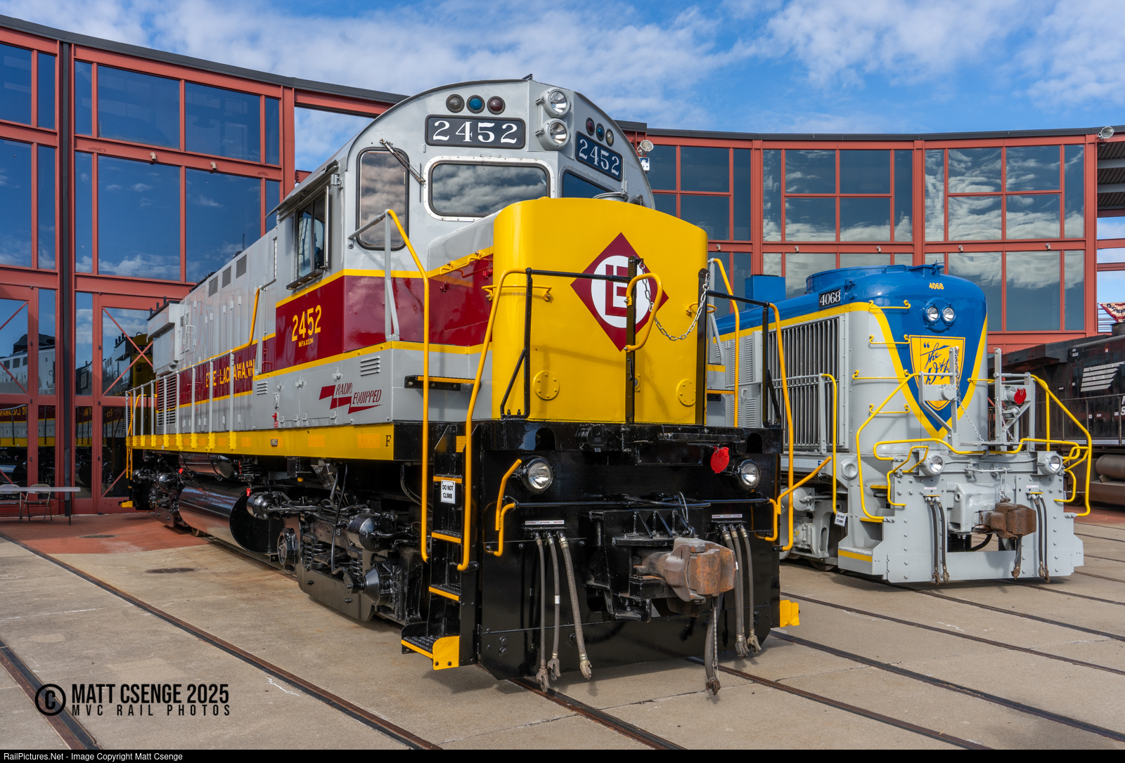 Railfest 2025 at Steamtown National Historic Site included multiple locomotives graciously lent by the local short line, the Delaware-Lackawanna (DL). The railroad is well-known as a haven for diesels built by the American Locomotive Company (ALCO), rebuilding and operating the less-common and in some cases rare locomotives on a daily basis. Here we see two of their locomotives on display in fresh heritage schemes: C425 no. 2452 in Erie Lackawanna (EL) paint, and RS3 no. 4068 in resplendent Delaware & Hudson blue and gray. |