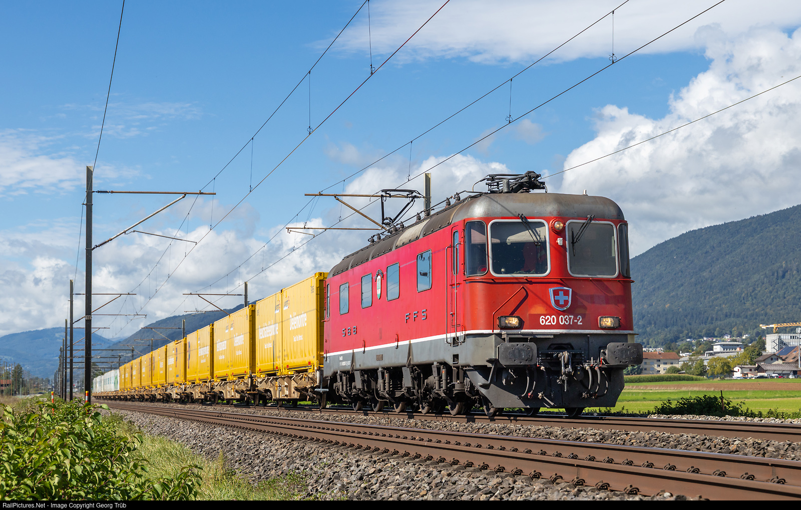 | Re 620 # 037 (Re 6/6 # 11637) of the SBB pulls the parcel mail train 50067 from Daillens via Biel-Olten-Zürich Altstetten-Kloten-Winterthur to Frauenfeld sort center, between Bettlach and Selzach. The train is running up to 120 km/h and stops in Härkingen parcel center only. |