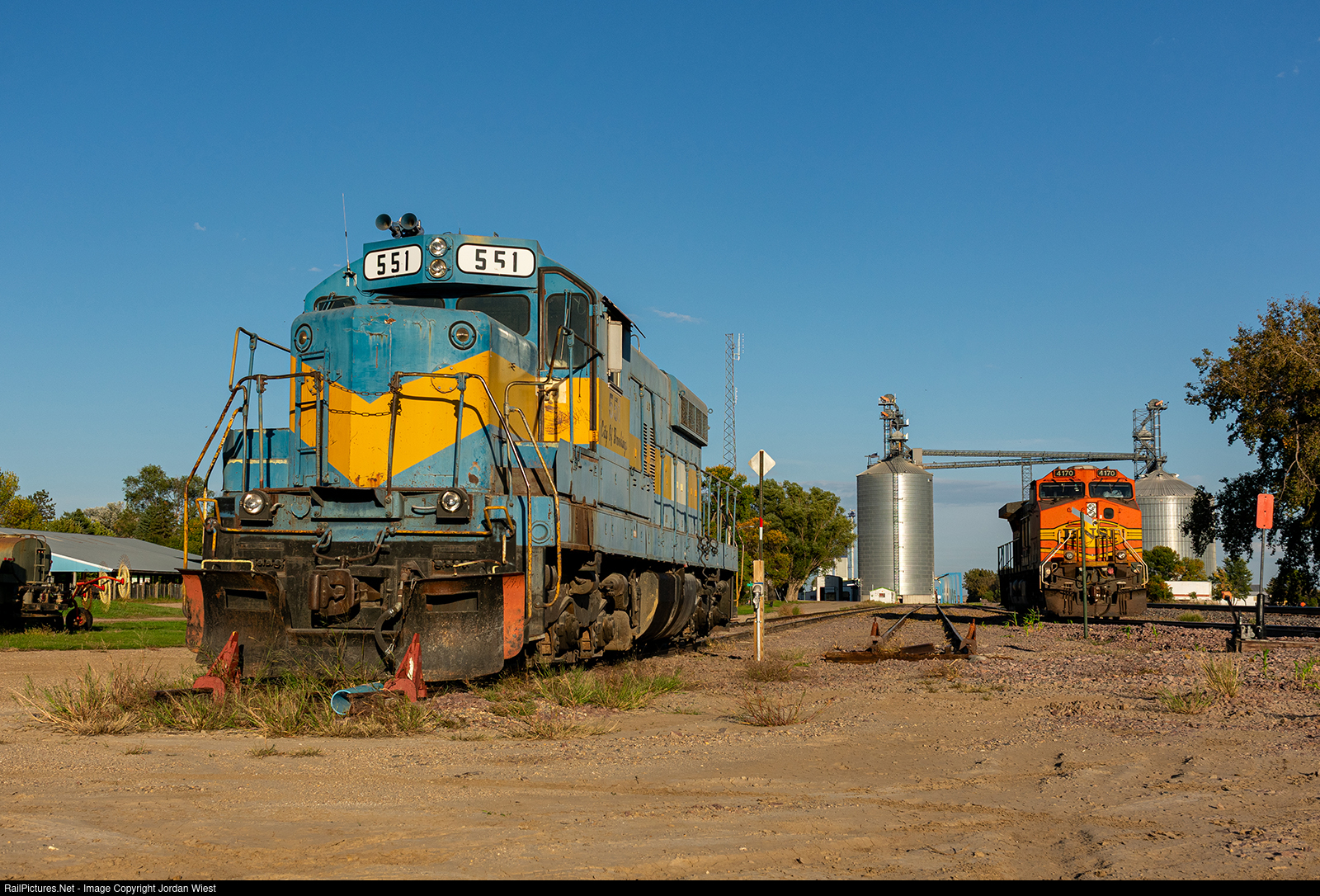 Even though it says "City of Brookings," this elevator switcher resides farther north in Selby. Ex DME 551 was built for the Milwaukee Road in 1954 as an SD9, and rebuilt later on as an SD10, eventually serving the DME until retirement in the 2000s. Now this locomotive serves as a switcher on the ex Milwaukee Road mainline in Selby, where it probably passed through several times in road service. To the right, BNSF 4170 idles, and would leave later that night on a unit grain train out of Selby.