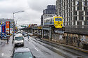 Panel Replacement. New York City Transit Authority (NYCTA) work trains are seen assisting with track replacement between W 8th Street and Ocean Parkway Stations on the BMT Brighton Line. Tracks are removed and installed in panels, with one of the cranes seen here removing the old panels from the structure and the other lifting new ones onto the structure. The trains also include crane cars, which are used to move the track panels from the crane pick area to the installation site and vice versa.